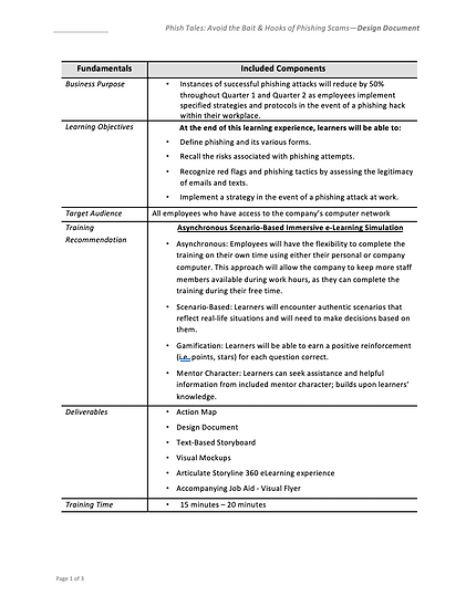 I consider text-based storyboards to be an important tool in the development of effective learning experiences. After completing my design document, I construct text-based storyboards to organize my ideas, ensure logical sequencing of content, and identify potential gaps or areas where more information or clarification may be needed. Within my text-based storyboards, I include information on visual, audio, and programming prompts. I demonstrate how each of these components will be weaved together to create a cohesive learning experience. Text-based storyboards also allow for me to communicate my ideas more clearly to stakeholders. Oftentimes, text-based storyboards are the first portion of the instructional design process where stakeholders can begin to see the project come to life - making them a crucial element in gaining buy-in and feedback from project sponsors, Subject Matter Experts (SMEs), and other stakeholders. Text-based storyboards are an invaluable asset in my instructional design process.